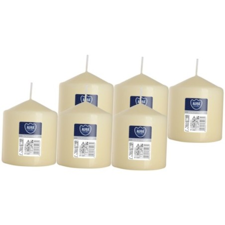 Świeca walec BISPOL Aura 38H 9CM SW80/90 KREMOWA 6szt.