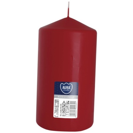 Burgundowa świeca dekoracyjna w kształcie walca, bezzapachowa o wysokości 15cm, średnicy 7,8cm i czasie palenia do 66 godzin BISPOL.
