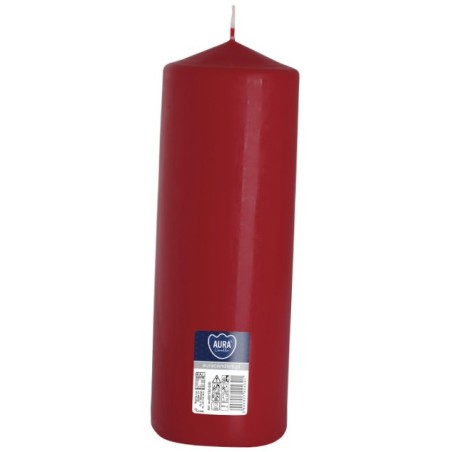 Burgundowa świeca dekoracyjna w kształcie walca, bezzapachowa o wysokości 25cm, średnicy 7,8cm i czasie palenia do 160 godzin BISPOL.