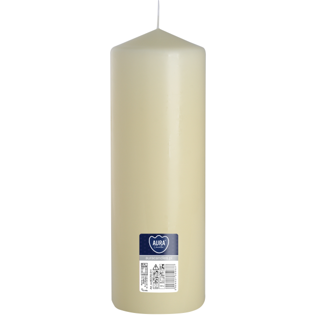 Kremowa świeca dekoracyjna w kształcie walca, bezzapachowa o wysokości 25cm, średnicy 7,8cm i czasie palenia do 160 godzin BISPOL.