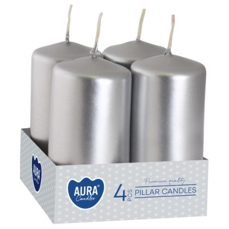 Świeca wotywna BISPOL Aura 9H 8CM SW40/80 SREBRNY METALIK 4szt.