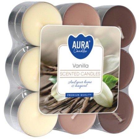 Tealighty Podgrzewacze o zapachu wanilii, różnobarwnym wosku i czasie palenia do 4 godzin BISPOL. Pakowane po 18 szt jednostkowych w opakowaniu zbiorczym.Aromatyczny zapach wydzielany podczas spalania oraz długi czas palenia tworzą niezapomniany klimat dzięki czemu sprawiają, że podgrzewacze zapachowe idealnie sprawdzą się jako element dekoracyjny domu, hotelu, biura, sali bankietowej, salonu masażu, gabinetu kosmetycznego lub innej przestrzeni publicznej.