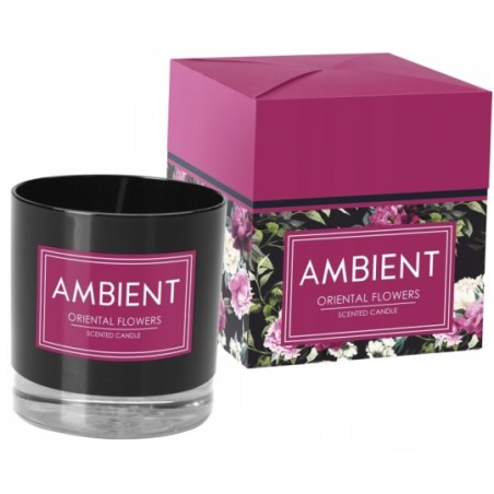 Świeca zapachowa z serii AMBIENT, o zapachu orientalnych kwiatów i czasie palenia do 32 godzin BISPOL.