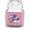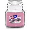 Mała świeca zapachowa w słoiku z wieczkiem, o zapachu mrożonych jagód czasie palenia do 28 godzin BISPOL.