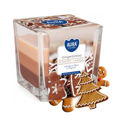 Świeca zapachowa w szkle trójkolorowa BISPOL Aura 32H CIASTECZKO WANILIOWE
