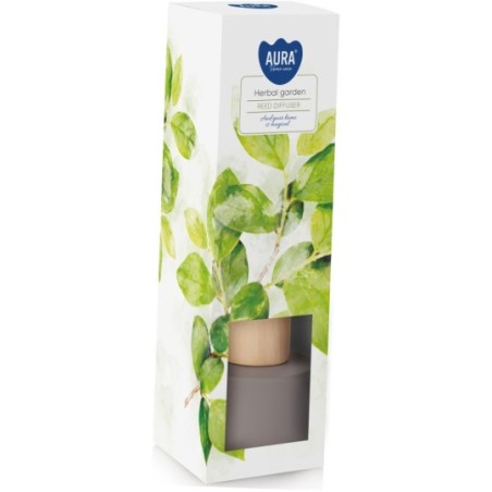 Dyfuzor zapachowy z patyczkami, ziołowy ogród o pojemności 85ml i trwałości zapachu do 7 tygodni BISPOL.