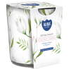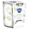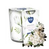 Świeca zapachowa w szkle, ozdobiona folią z motywem białego rozkwitu oraz czasem palenia do 22 godzin BISPOL.