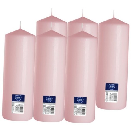Świeca dekoracyjna w kolorze jasnego różu, kształcie walca, bezzapachowa o wysokości 25cm, średnicy 7,8cm i czasie palenia do 160 godzin BISPOL. Pakowana po 6szt. jednostkowych w opakowaniu zbiorczym.