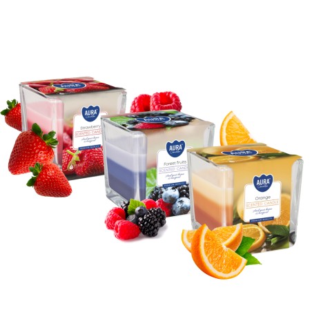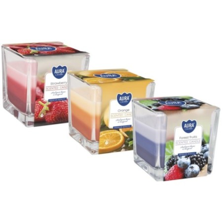 ZESTAW Świeca zapachowa w szkle trójkolorowa BISPOL Aura 32H MIX "4" 3szt.