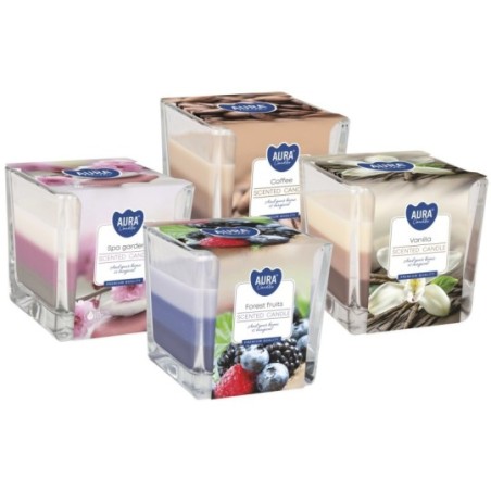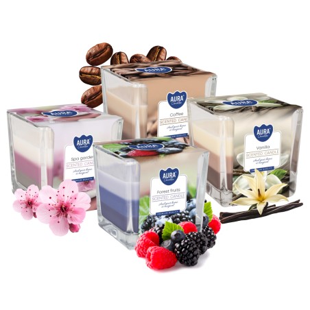 ZESTAW Świeca zapachowa w szkle trójkolorowa BISPOL Aura 32H MIX "7" 4szt.