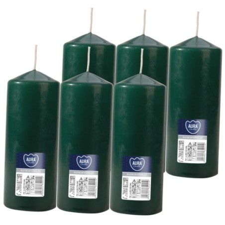 Świeca dekoracyjna w kolorze butelkowej zielenikształcie walca, bezzapachowa o wysokości 15cm, średnicy 5,8cm i czasie palenia do 48 godzin BISPOL. Pakowana po 6szt. jednostkowych w opakowaniu zbiorczym.