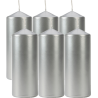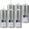 Świeca dekoracyjna w kolorze srebrny metalik, kształcie walca, bezzapachowa o wysokości 15cm, średnicy 5,8cm i czasie palenia do 48 godzin BISPOL. Pakowana po 6szt. jednostkowych w opakowaniu zbiorczym.