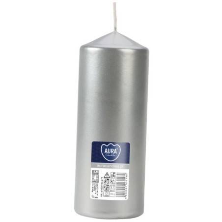 Świeca walec BISPOL Aura 48H 15CM SW60/150 SREBRNY METALIK