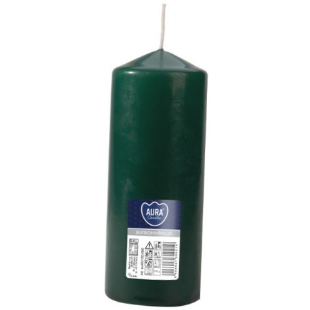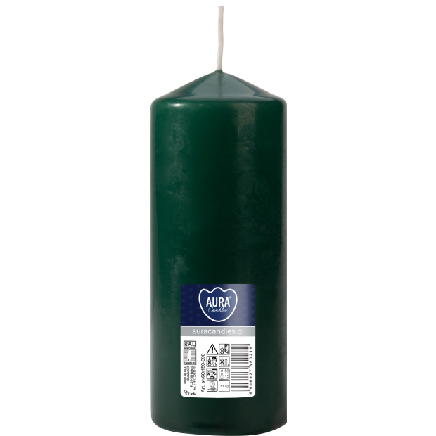 Świeca dekoracyjna w kolorze butelkowej zieleni, kształcie walca, bezzapachowa o wysokości 15cm, średnicy 5,8cm i czasie palenia do 48 godzin BISPOL.