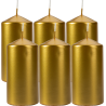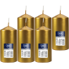 Świeca dekoracyjna w kolorze złoty metalik, kształcie walca, bezzapachowa o wysokości 12cm, średnicy 5,8cm i czasie palenia do 38 godzin BISPOL. Pakowana po 6szt. jednostkowych w opakowaniu zbiorczym.