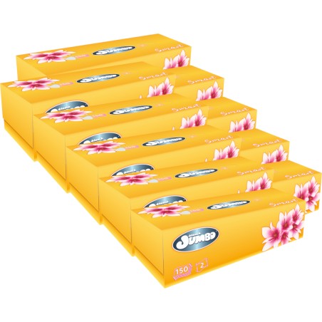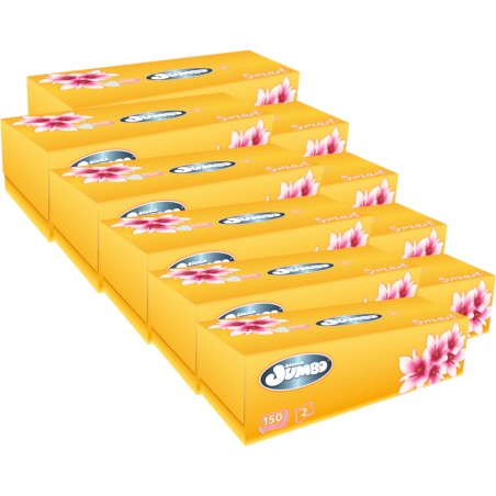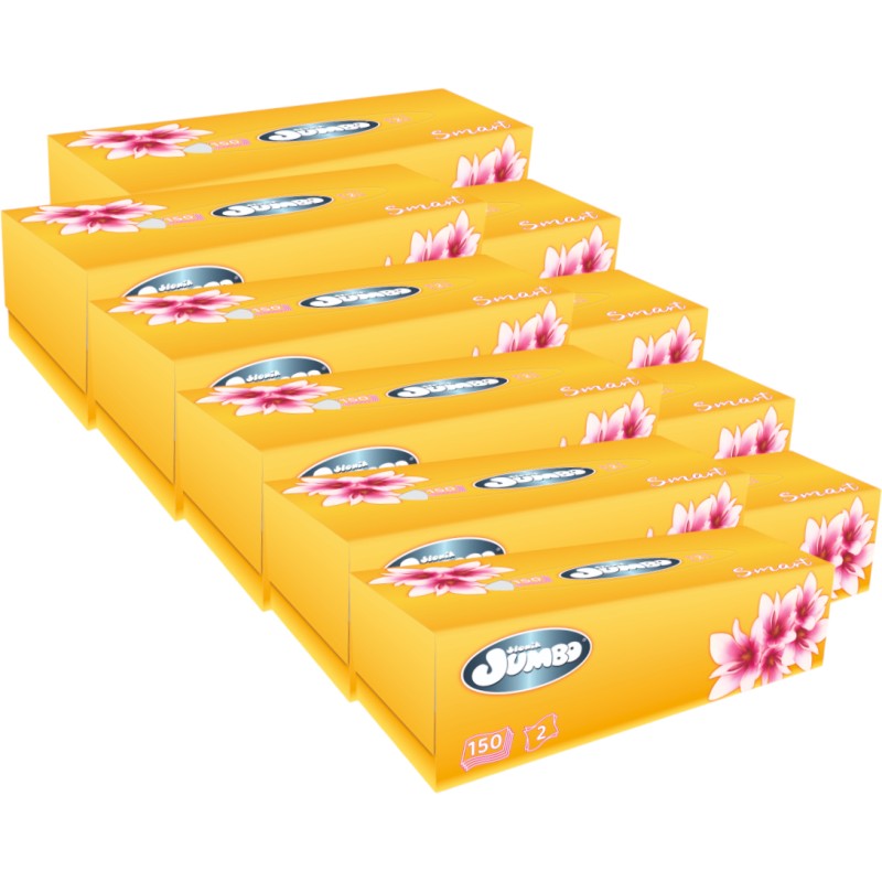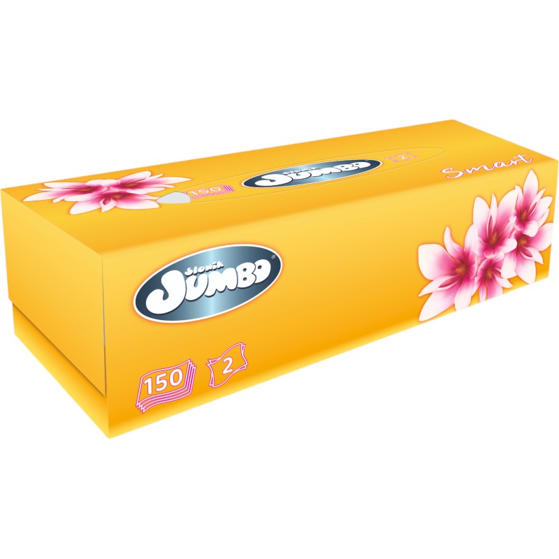 Dwuwarstwowe chusteczki higieniczne Słonik JUMBO w kolorze białym. Pakowane po 150szt jednostkowych w opakowaniu zbiorczym.