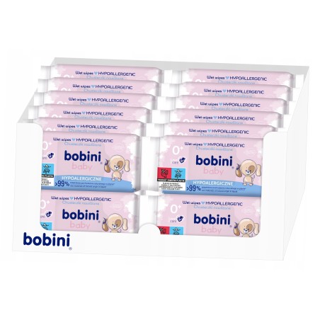 Chusteczki nawilżane BOBINI Hypoalergiczne 60szt. to delikatne chusteczki przeznaczone do codziennej pielęgnacji skóry niemowląt i małych dzieci. Zawierają ekstrakt z owsa, mają neutralne pH, nie zawierają alkoholu, parabenów ani silikonów. Miękkie, skutecznie oczyszczają, nie podrażniając skóry – idealne od 1. dnia życia.