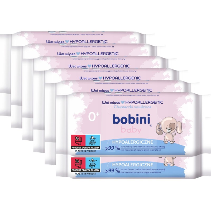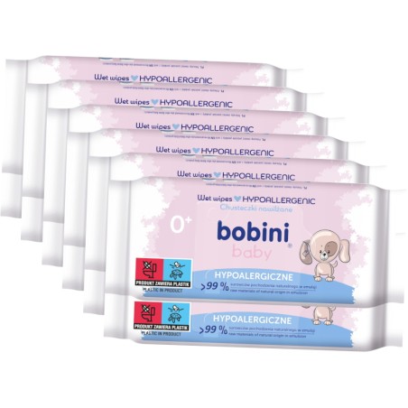 Chusteczki nawilżane BOBINI Hypoalergiczne 60szt. to delikatne chusteczki przeznaczone do codziennej pielęgnacji skóry niemowląt i małych dzieci. Zawierają ekstrakt z owsa, mają neutralne pH, nie zawierają alkoholu, parabenów ani silikonów. Miękkie, skutecznie oczyszczają, nie podrażniając skóry – idealne od 1. dnia życia.