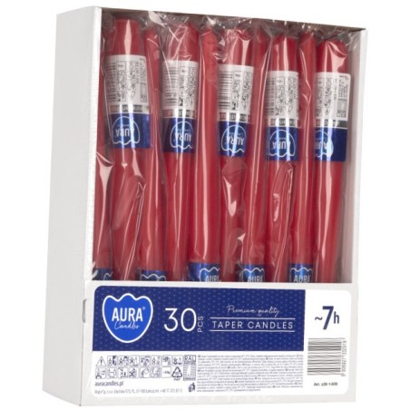 Świeca stołowa stożek BISPOL Aura 7H 24,5CM S30-1/30 CZERWONA 30szt.