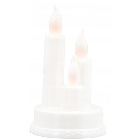 Potrójna świeca ze świecznikiem LED CORTINAw kolorze białym o wysokości 14cm, średnicy 8,3cm z imitacją efektu płomienia. Świeca najwyższej jakości, nie wydziela CO2.