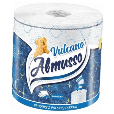 Almusso Vulcano to innowacyjny ręcznik papierowy, który łączy w sobie wyjątkową chłonność i wytrzymałość dzięki zastosowaniu trzech warstw 100% czystej celulozy. Specjalna mieszanka włókien i nowoczesna technologia tłoczenia każdej warstwy osobno, w połączeniu z precyzyjną aplikacją kleju, sprawiają, że ręcznik doskonale pochłania płyny, pozostając przy tym niezwykle trwały.