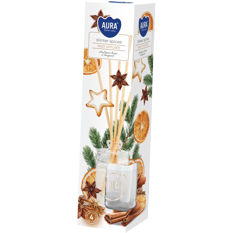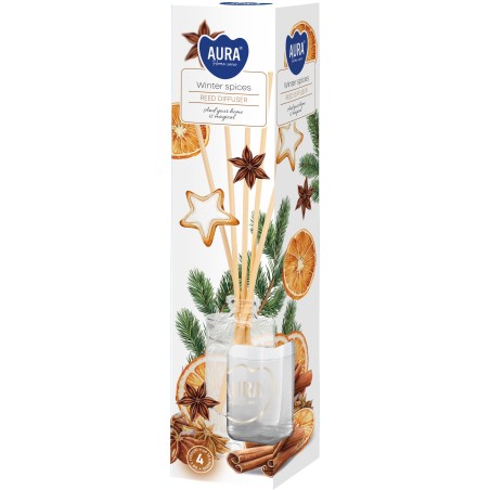 Dyfuzor zapachowy z patyczkami, zimowe przyprawy o pojemności 45ml i trwałości zapachu do 4 tygodni BISPOL.