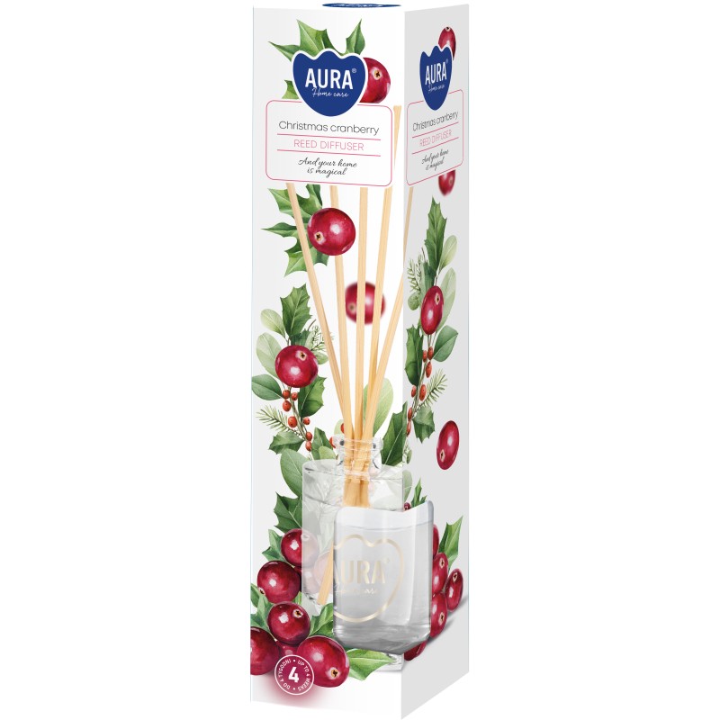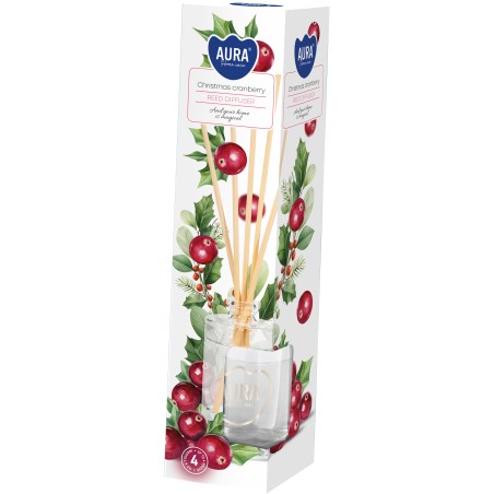 Dyfuzor zapachowy z patyczkami, świąteczna żurawina o pojemności 45ml i trwałości zapachu do 4 tygodni BISPOL.