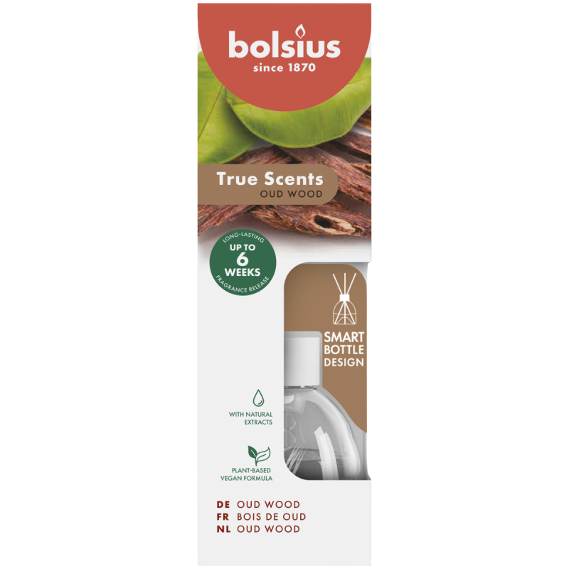 Dyfuzor zapachowy z patyczkami z serii True Scents, o zapachu drzewa agarowego, pojemności 60ml BOLSIUS.