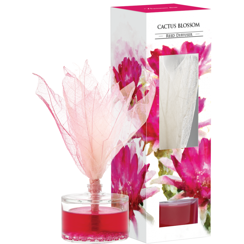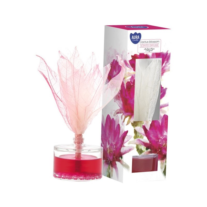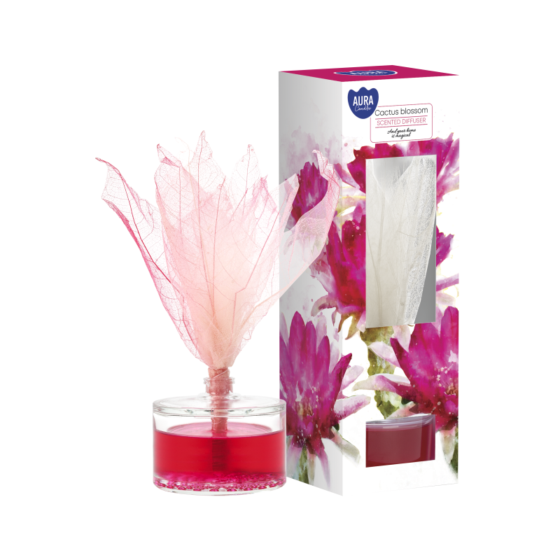Dyfuzor zapachowy z liściem, kwiat kaktusa o pojemności 50ml i trwałości zapachu do 4 tygodni BISPOL.