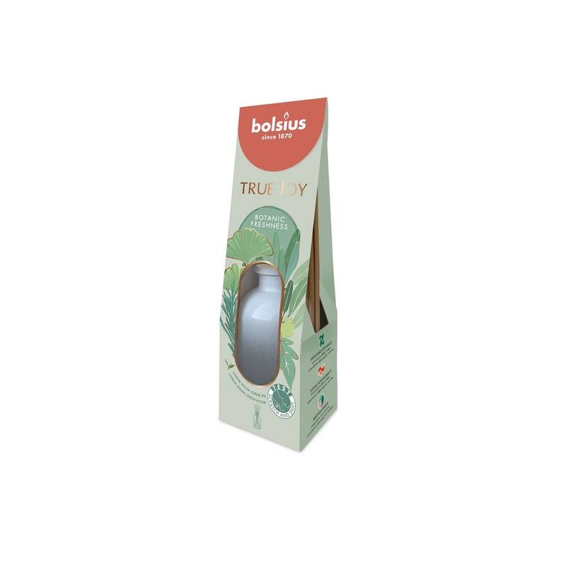Dyfuzor zapachowy z patyczkami z serii True Joy, o zapachu Botanic Freshness, pojemności 80ml BOLSIUS.