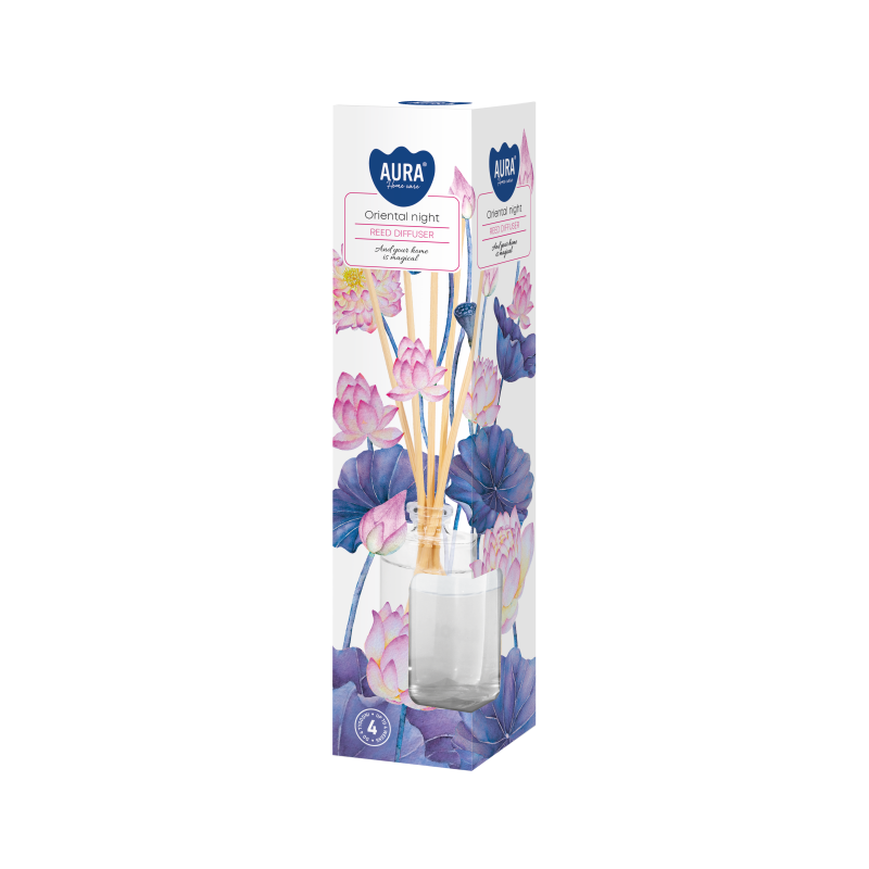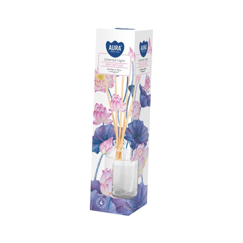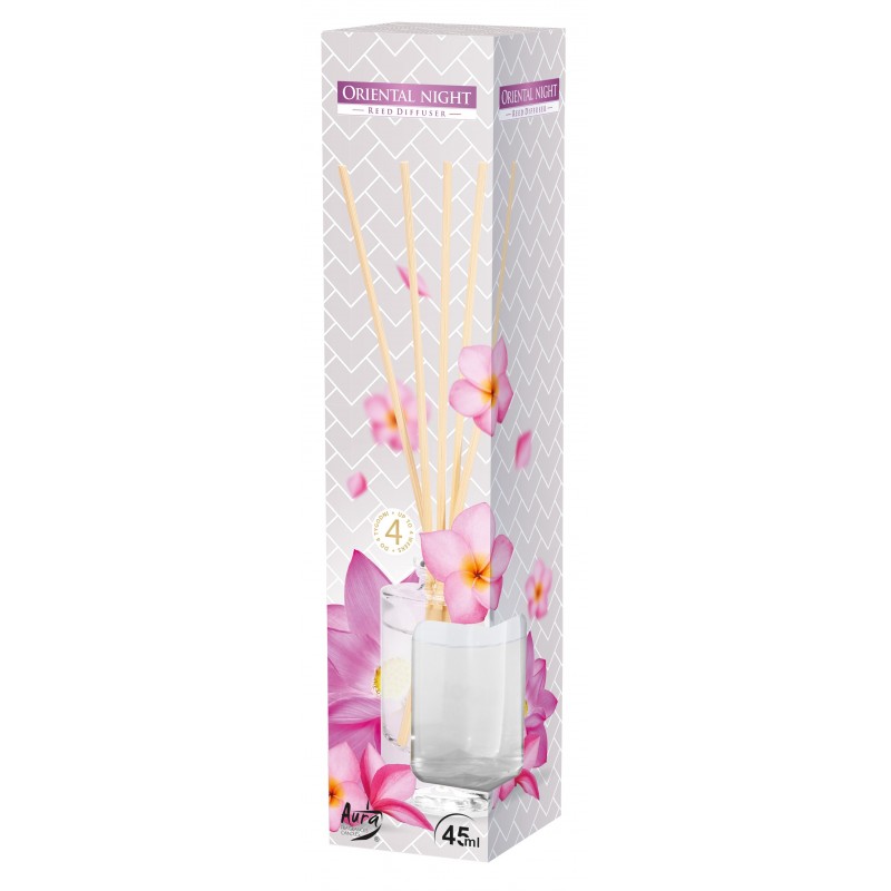 Dyfuzor zapachowy z patyczkami, orientalna noc o pojemności 45ml i trwałości zapachu do 4 tygodni BISPOL.