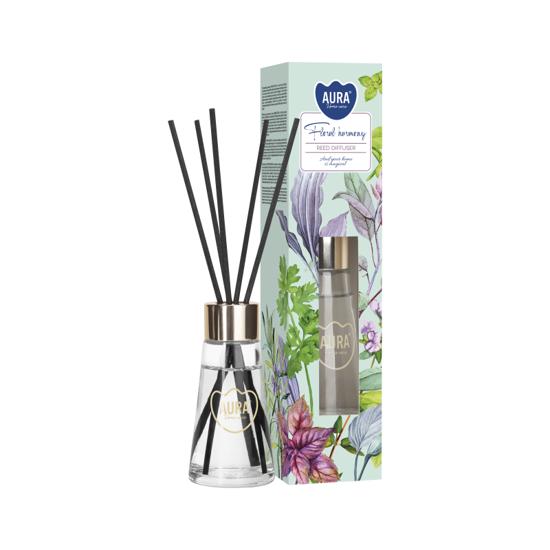 Dyfuzor zapachowy z patyczkami, kwiatowa harmonia o pojemności 50ml i trwałości zapachu do 4 tygodni BISPOL.