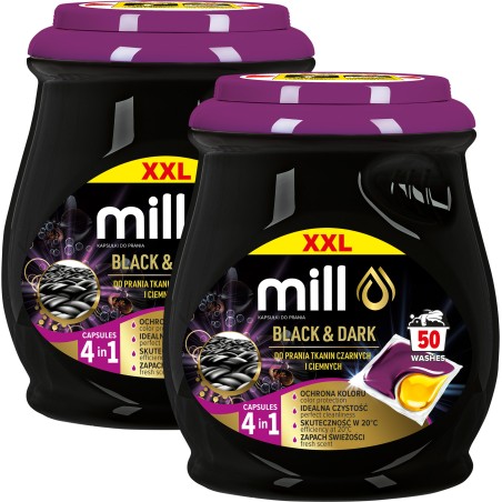 Kapsułki do prania tkanin czarnych i ciemnych MILL Black & Darks 50szt. x2