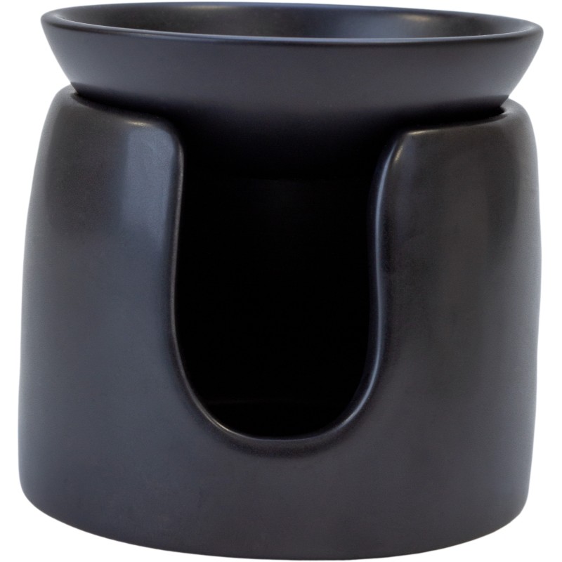 Ceramiczy kominek do wosków zapachowych, o wysokości 9,5cm, kolorze czarnym i eleganckim kształcie BISPOL.