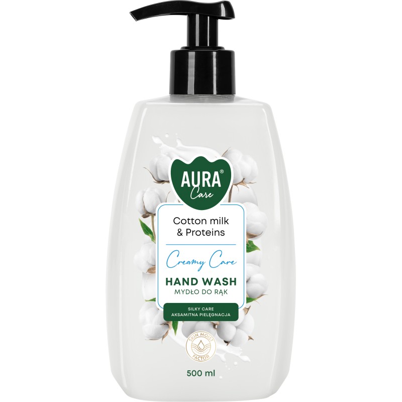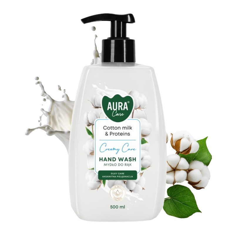 Mydło w płynie z dozownikiem BISPOL Aura Care 500ml MLECZKO BAWEŁNIANE I PROTEINY