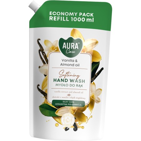 Ekonomiczny zapas 1 litra kremowego mydła o relaksującym zapachu Wanilii i Olejku migdałowego.