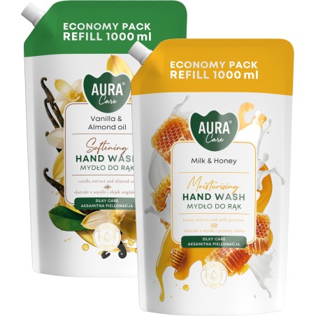 Ekonomiczny zapas 1 litra kremowego mydła do rąk o słodkim zapachu Mleka i Miodu.