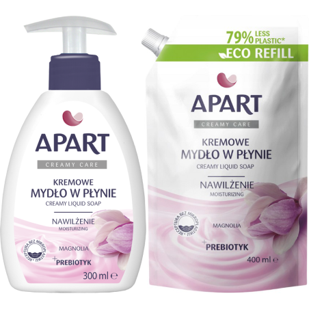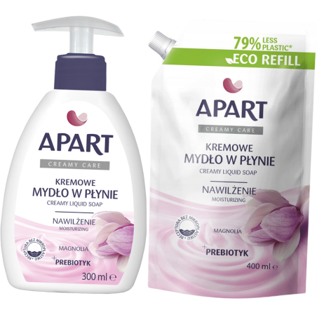 Mydło w płynie w dozowniku APART Creamy Care 300ml MAGNOLIA + zapas 400ml - to kremowe mydło w płynie o delikatnym zapachu magnolii, które łączy skuteczne oczyszczanie z pielęgnacją skóry dłoni.