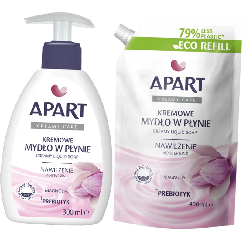 ZESTAW Mydło w płynie z dozownikiem APART Creamy Care 300ml MAGNOLIA + Zapas 400ml