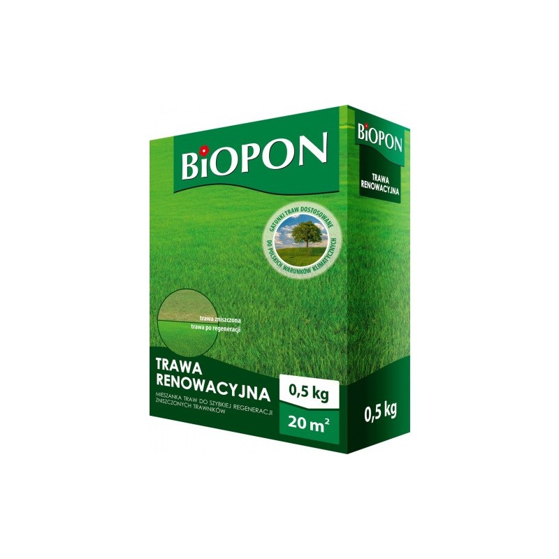 Specjalnie dobrana mieszanka gazonowa przeznaczona do odbudowy uszkodzonych fragmentów trawnika, powstałych wskutek mrozu, suszy, chorób czy też prac budowlanych. Dzięki zawartości szybko kiełkujących odmian daje możliwość przywrócenia pierwotnego wyglądu trawnika w stosunkowo krótkim czasie i bez większego wysiłku. Tworzy gęstą, piękną kolorystycznie, wytrzymałą na wymarzanie darń. Mieszankę można stosować również w celu odświeżenia wyglądu trawnika.