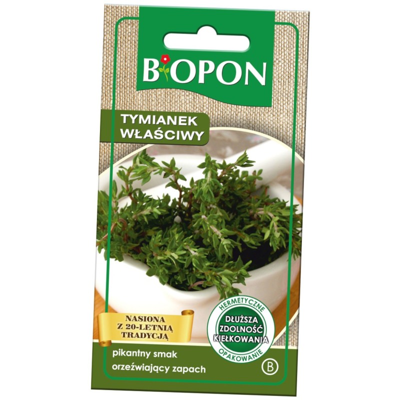 Roślina wieloletnia. Wysiew nasion wprost do gruntu w kwietniu w rzędy co 30 - 40 cm. Nasion nie przykrywać ziemią a tylko je przygnieść. Wywar z ziela zalecany w stanach zapalnych jamy ustnej i gardła wywołanych bakteriami ropotwórczymi, w nieżytach gardła i krtani. Stosowany również do kąpieli wzmacniających i odkażających. Ziele tymianku ma też zastosowanie jako przyprawa kuchenna.