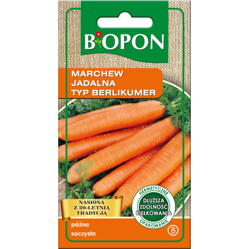 Odmiana późna, szczególnie przydatna do przechowywania. Okres wegetacji ok. 150 dni. Korzeń długości 16 - 19 cm walcowaty, lekko zaostrzony. Miąższ ciemnopomarańczowy. Na sprzęt i spożycie letnie wysiew w kwietniu, na przechowywanie zimowe wysiew w pierwszej połowie maja. Na obsianie 1 ara potrzeba 60 – 70 - 100 g nasion, w zależności od stanowiska i zdolności kiełkowania.