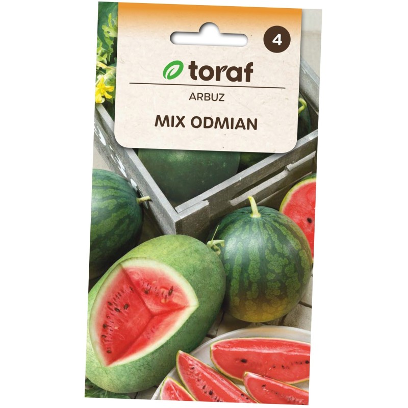 Unikalna mieszanka kilku odmian arbuzów o zróżnicowanym kształcie, wielkości, kolorze skórki i miąższu. Owoce dojrzewają w różnym czasie od połowy VII aż do X, dzięki temu można przez dłuższy czas cieszyć się świeżymi, soczystymi owocami. Wysiew do inspektu