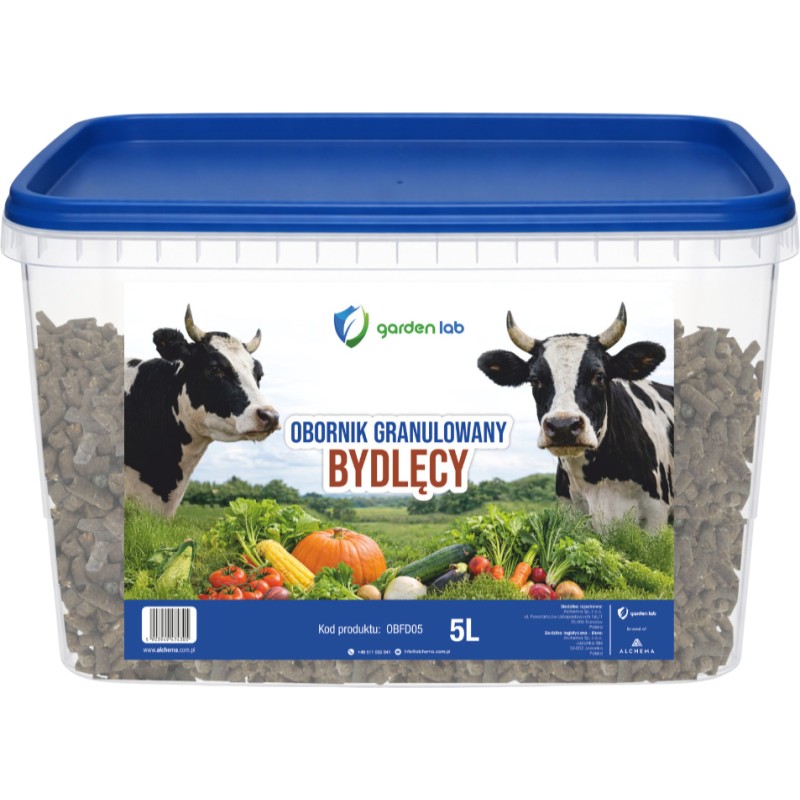 Obornik granulowany bydlęcy GARDEN LAB - W pełni naturalny, organiczny nawóz bydlęcy w formie wygodnego granulatu. Jest to jeden z najbardziej uniwersalnych nawozów, idealny do zasilania warzyw, owoców, kwiatów oraz krzewów ozdobnych. Dzięki procesowi fermentacji i suszenia, produkt jest wolny od nasion chwastów, patogenów oraz niepożądanych zapachów, zachowując przy tym wszystkie cenne makro- i mikroelementy.