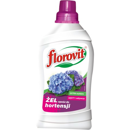 Florovit żel do hortensji to specjalistyczny, wysokoskoncentrowany nawóz mineralny w innowacyjnej postaci gęstego żelu. Został opracowany, aby sprostać wysokim wymaganiom pokarmowym wszystkich gatunków i odmian hortensji (m.in. ogrodowych, bukietowych, drzewiastych). Żelowa formuła zapewnia wyjątkową wydajność, łatwe dozowanie bez rozlewania oraz doskonałą rozpuszczalność w wodzie. Regularne stosowanie nawozu stymuluje krzewy do bujnego wzrostu, zapewnia zawiązywanie licznych pąków kwiatowych oraz gwarantuje długie i obfite kwitnienie o intensywnych barwach.
