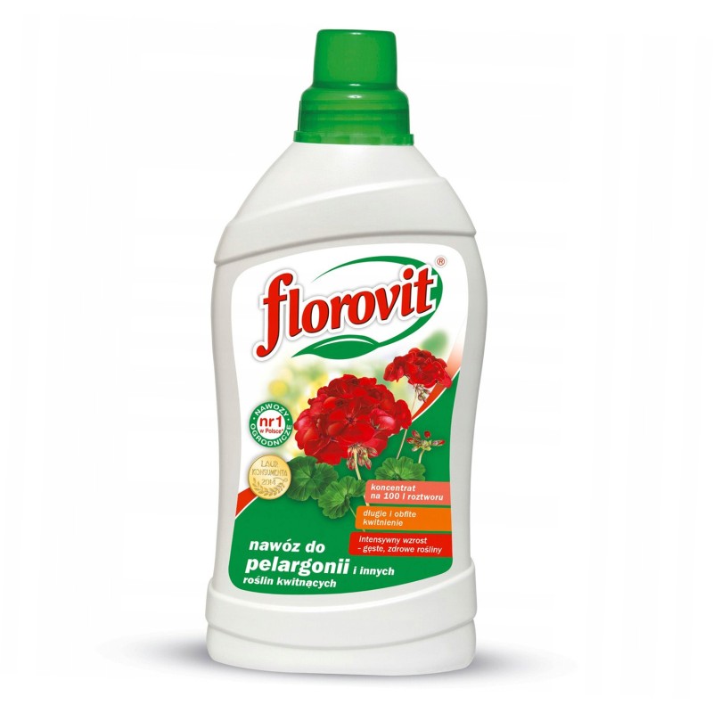 Florovit nawóz do pelargonii to specjalistyczny, skoncentrowany nawóz mineralny w formie płynnej, przeznaczony do dokarmiania wszystkich rodzajów i odmian pelargonii oraz innych roślin balkonowych (takich jak petunie, fuksje, werbeny czy aksamitki). Dzięki optymalnie zbilansowanemu składatowi, preparat zapewnia roślinom szybki wzrost, intensywne krzewienie się oraz bardzo obfite i długotrwałe kwitnienie. Regularne stosowanie gwarantuje żywe kolory kwiatów oraz soczystą zieleń liści, zwiększając jednocześnie odporność roślin na choroby i niekorzystne warunki atmosferyczne.