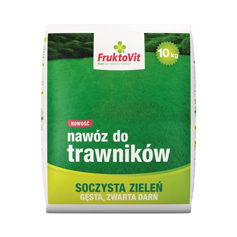 FruktoVit PLUS to wysokiej jakości nawóz mineralny w formie granulatu, przeznaczony do pielęgnacji wszystkich rodzajów trawników. Dzięki odpowiednio dobranej kompozycji składników pokarmowych, nawóz pobudza trawę do szybkiego wzrostu i intensywnego krzewienia się, co pozwala uzyskać efekt gęstego, zielonego dywanu. Zawartość żelaza sprzyja intensywnemu wybarwieniu darni oraz ogranicza rozwój mchu. Regularne stosowanie produktu zwiększa odporność trawy na suszę, choroby oraz intensywne użytkowanie (wydeptywanie).