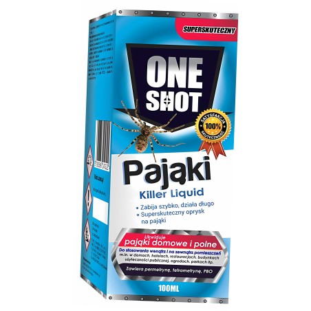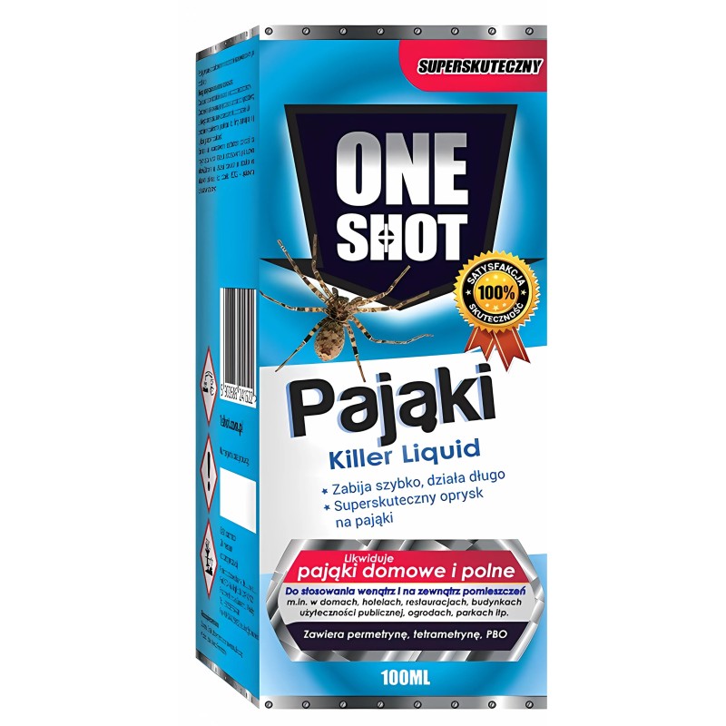 Preparat na pająki ONE SHOT to profesjonalny, wysokoskoncentrowany preparat owadobójczy, stworzony do szybkiej i długotrwałej eliminacji pająków – zarówno tych domowych, jak i polnych.