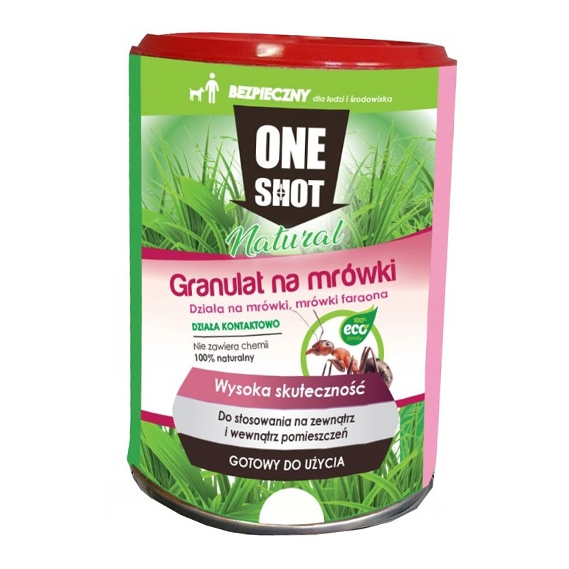 Proszek na mrówki ONE SHOT Natural One Shot Granulat to profesjonalny, niezwykle skuteczny środek, który nie tylko eliminuje pojedyncze osobniki, ale uderza w samo serce problemu – całą kolonię wraz z królową. Dzięki dużej pojemności 1 kg, zapas ten wystarczy na zabezpieczenie dużej powierzchni przez długi czas.