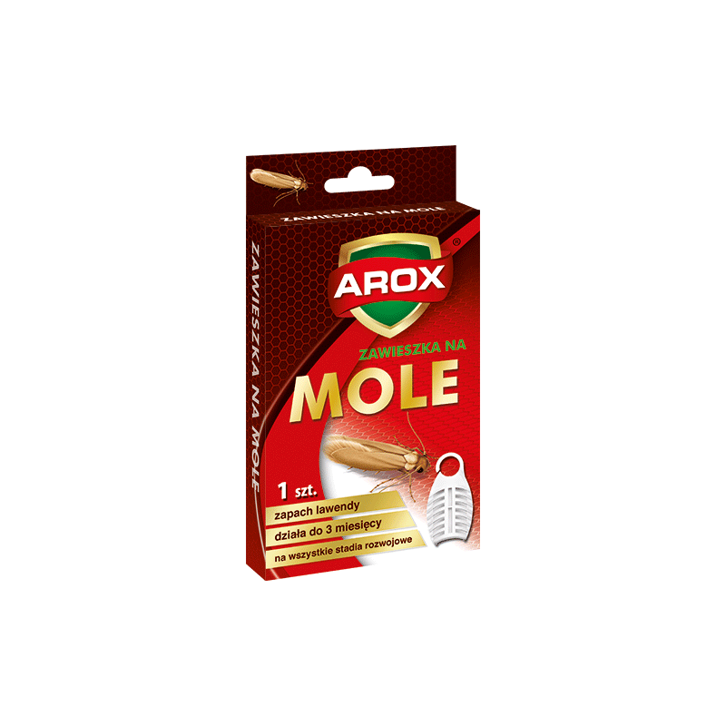Zawieszka na mole odzieżowe to produkt w postaci zawieszki nasączonej substancją czynną. Zawieszka przeznaczona do zwalczania moli odzieżowych. Do zastosowania w garderobach, szafach, szufladach, skrzyniach, itd. Należy używać jedną zawieszkę na 1 m3. Pełny efekt biobójczy następuje od 7 do 14 dni. Produkt działa przez 3 miesiące od użycia. Produkt powszechnego stosowania. Opakowanie należy otwierać bezpośrednio przed użyciem. Po każdorazowym kontakcie z produktem dokładnie umyć ręce.
